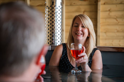 Relax in the warmth of the hot tub, nestled under a protective canopy that ensures enjoyment in any weather, surrounded by the natural beauty and tranquillity of your very own glamping oasis.
