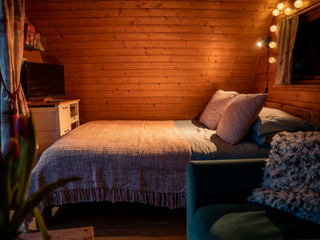 Soak away stress in the wood fired hot tub, as you gaze across panoramic views of the Radnor Valley and Black Mountains below. The heating process takes only approx 2 hours to reach a toasty 36-38°C. Complimentary kindling and wood is supplied within the cost of your stay and is enough to get the water to temperature. If want to hop straight into the hot tub on arrival, pre-lighting can be added to your booking as an optional extra. Further wood for the hot tub, should you need it, is available to purchase via online card payment at the pod.