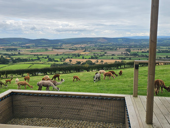 35 alpacas live at the farm and can often be seen ambling around the accommodation. They may move fields from time to time, as according to their pasture management schedule, but remain on the farm year round so if they are not right outside, they will only be a short walk away.